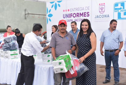 Adriana entregó uniformes al personal del SAPA Jacona